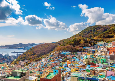 Afternoon Tour: This afternoon, the journey continues to Gamcheon Culture Village, one of Busan’s most iconic artistic neighborhoods. Perched along steep hillsides overlooking the sea, the village is a kaleidoscope of color—brightly painted homes, whimsical murals, mosaic stairways, and winding alleys filled with independent galleries and craft shops. A guided tour introduces the community’s remarkable transformation from a modest settlement into a thriving creative enclave, with ample time to browse local art, shop, or simply enjoy the lively atmosphere.